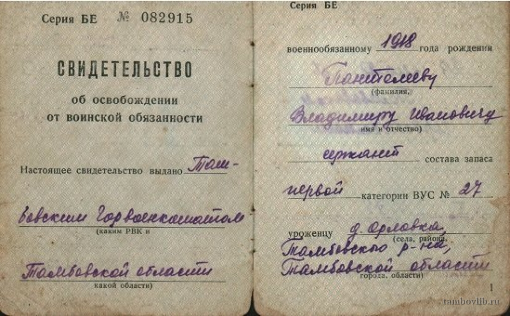 Родился д. Орловка Тамбовского района Тамбовской области в 1918 г. Призван в ряды Советской армии в 1939 г. Служил в 92-м Гвардейском Корпусном Артиллерийском Николаевском полку. Был ранен при защите Ленинграда в апреле 1942 г. После излечения продолжал службу в том же полку с августа 1942 г. по апрель 1945 г. В апреле 1945 г. был ранен. В августе 1945 г. был демобилизован в связи с ранением. Награжден медалью «За оборону Кавказа», «За боевые заслуги», юбилейными медалями. После войны работал трактористом на разных предприятиях г. Тамбова. Умер в 1990 г.Добавлена 19 Апреля 2015