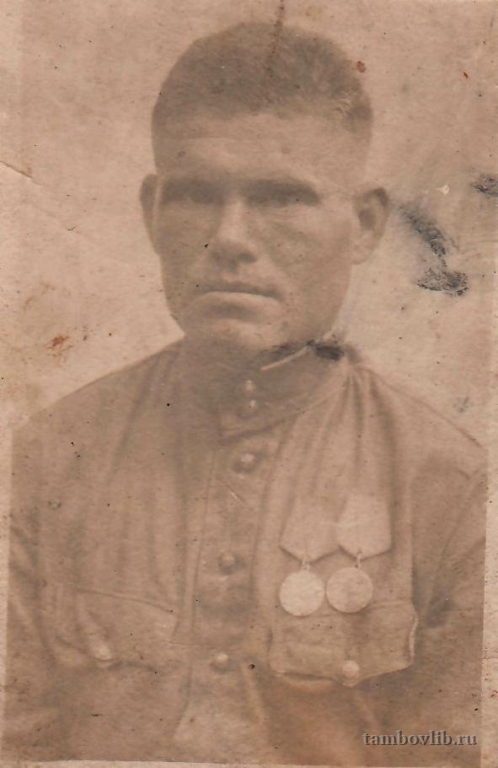 Родился 15 мая 1920 года в с. Никольское Знаменского района Тамбовской области. Призван в армию 10 октября 1940 года. Был на финской войне. В период с 14.4.1941 г. по 10.4.1943 г. служил в должности орудийного номера в 194 зенитном артиллерийском полку, который всю блокаду защищал г. Ленинград. Дошел до Германии. Был 3 раза ранен. Имеет награды: Орден Славы III степени, медали "За боевые заслуги", "За оборону Ленинграда", "За победу над Германией в Великой Отечественной войне 1941-1945 гг.", юбилейные медали. Демобилизовался 15 ноября 1945 года. Вернулся на родину. Работал в совхозе "Сухотинский" комбайнером. Похоронен в с. Никольское. Фото сделано в Ленинграде. Из архива сына Чикунова Виктора Васильевича.16 августа 1942 Знаменская ЦБС Портрет