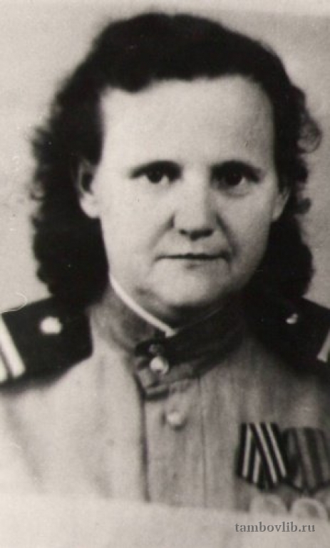 Участник ВОВ, санитарка. Ухаживала за ранеными в эшелонах, на которых с Украины эвакуировали заключенных на Урал, выносила раненых с поля боя, много раз отдавала свою кровь, чтобы спасти солдата от смерти. Имеет медали «За взятие Берлина», «За освобождение Польши» и юбилейные награды.Межпоселенческая центральная библиотека Жердевского района Портрет