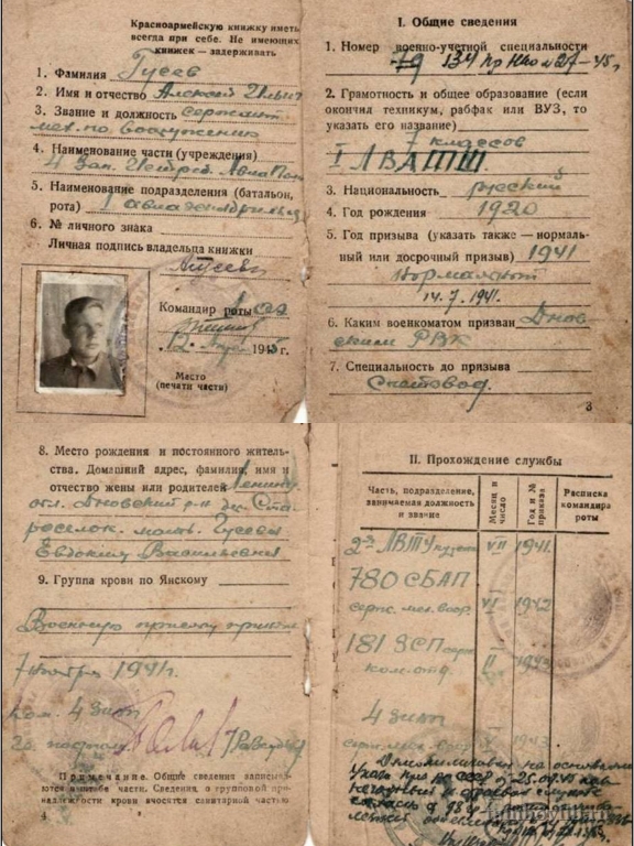 Военный билет Гусева Алексея Ильича