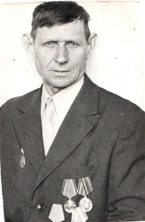 Призван в армию в 1940 году. В 1944 г. был ранен под Ленинградом. Награжден орденом Великой Отечественной войны II степени, медалью «За Победу над Германией» и юбилейными медалями. Умер в 1991 году. Фото предоставлено заведующей Сукмановским филиалом МБОУ Шпикуловской СОШ Евсеевичевой Татьяной Юрьевной.Межпоселенческая центральная библиотека Жердевского района Портрет