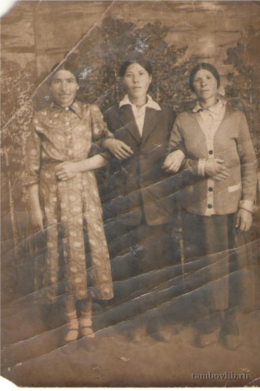 Три сестры Чернышовых - слева на права Прасковья, Матрена и Татьяна. Фото предоставлено внучкой Девицкой Мариной Валерьевной.1934 Межпоселенческая библиотека Староюрьевского района Семейное