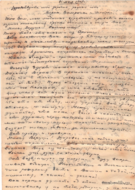 Письмо Кудрина Анатолия Прокофьевича жене и детям