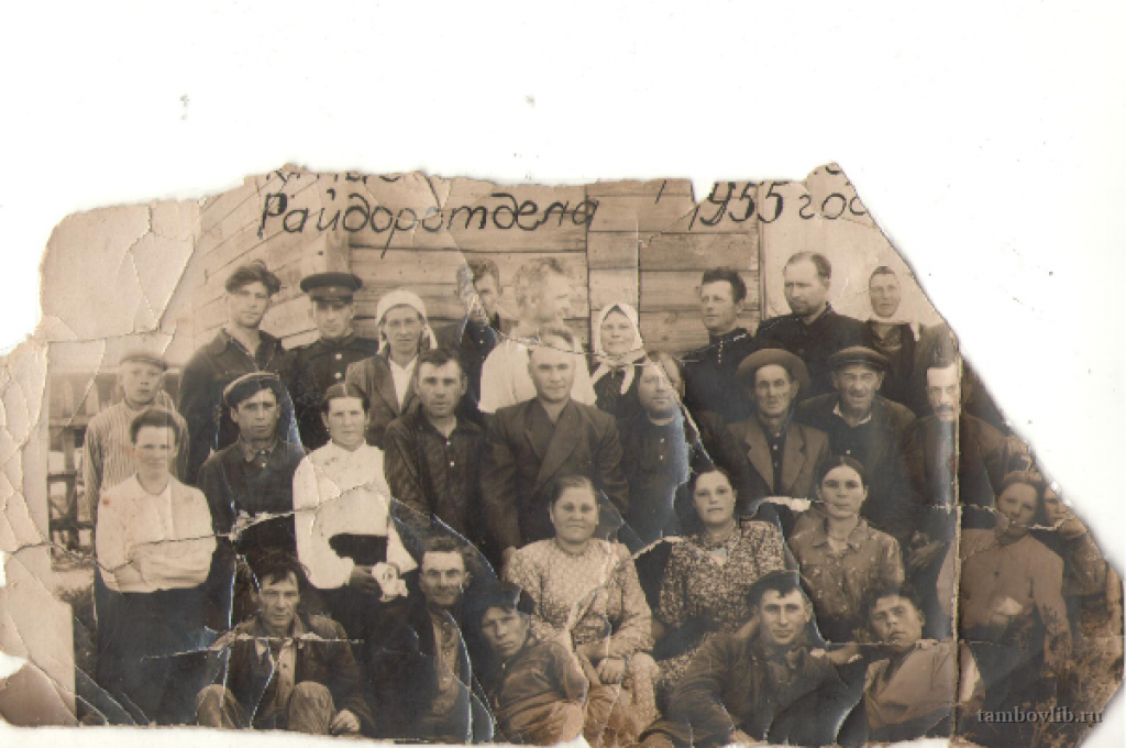 Рабочие Райдоротдел 1955год - Во втором ряду третья слева на право Цыплакова Варвара Васильевна. Фото предоставлено дочерью Сухаревой Зоей Васильевной1955 Межпоселенческая библиотека Староюрьевского района Семейное