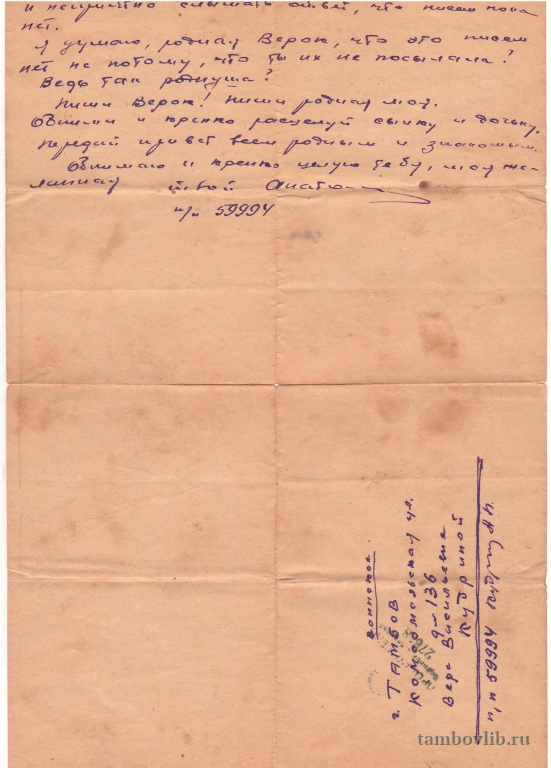 Письмо Кудрина Анатолия Прокофьевича жене и детям