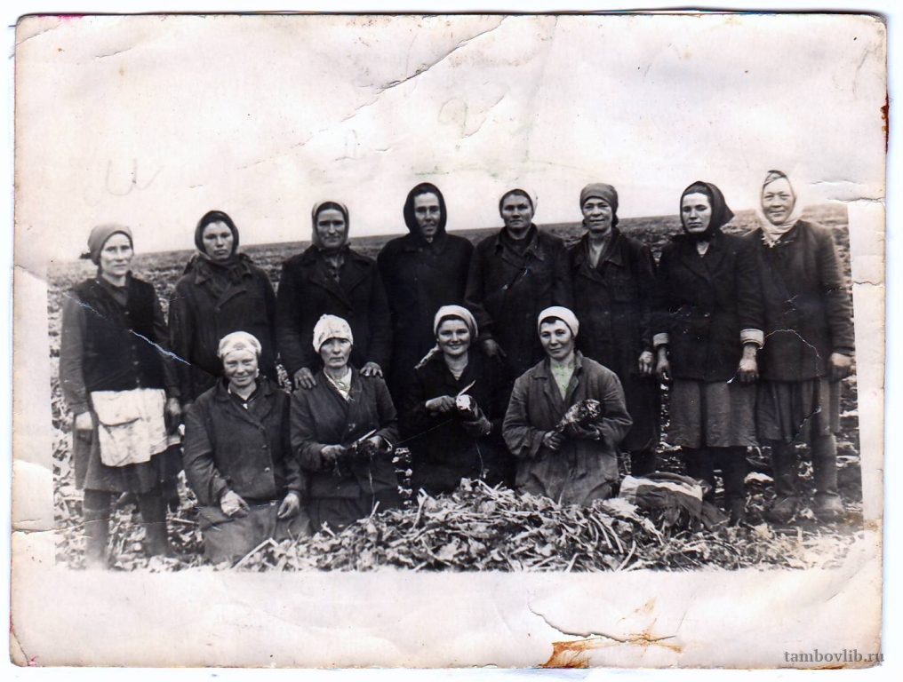 Бригада свекловичниц №1 колхоза "Родина" Бригадир Невзорова вера Семеновна (на фото в верхнем ряду четвертая справа)