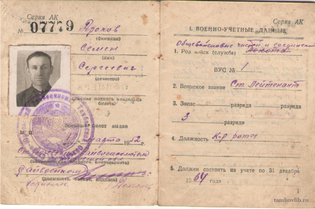 Война сделала много отметок на теле Семена Сергеевича. Израненный,получив удостоверение инвалида, он вернулся домой. Но он не стал обузой своей семье. Отдохнув, он устраивается на работу в колхоз имени Чапаева бригадиром в селе Староюрьева.На этой должности он проработал целых три десятилетия. Фотография - документа предоставлена снохой Дроковой Наталии ИвановныМежпоселенческая библиотека Староюрьевского района Документ