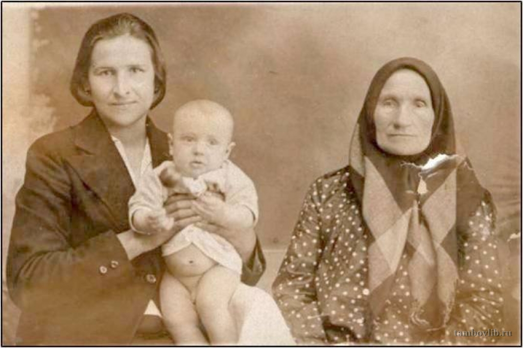 Богомолова Феврония Никаноровна со снохой Богомоловой Татьяной Федоровной и внуком