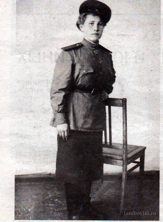 Родилась в 1923 г. в д. Лаврово Мордовского района Тамбовской области. Призвана в армию в 1942 г. При форсировании Днепра в 1943 г. была ранена. Проживает в Шульгино.Мордовская центральная районная библиотека Портрет