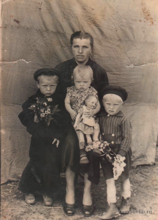 Тришина Зинаида Васильевна с детьми Алексеем, Валентиной, Владимиром