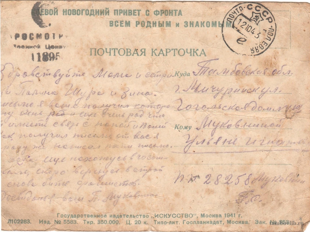 Письмо матери и сестре