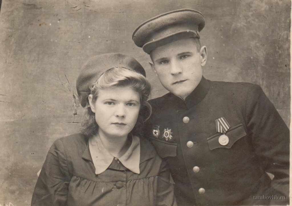 Шандарова Антонина Георгиевна (Чулкова)(1923 - 2014 гг.),уроженка села Верхний Шибряй Уваровского района Тамбовской области.В 1942 году, в неполные 18 лет добровольцем отправилась на фронт.Первое боевое крещение приняла под Мичуринском на станции Кочетовка-2.Дальнейший фронтовой путь шел через Тулу, Москву. Кроме основной специальности прожектористки освоила и шоферскую, на старенькой полуторке подвозила снаряды. В 1944 году воевала в Брянских лесах. Победу встретила в Польше. Награждена Орденом Отечественной войны II степени. Шандаров Василий Захарович, 1919 года рождения. Уроженец села Ольшанка Уваровского района Тамбовской области. В боях с немцами участвовал с марта 1943 года. Был командиром танка Т-34 1-го танкового батальона 26 Гвардейской танковой бригады. При атаке в районе с. Вислое 9.7.43 г. маневрируя на поле боя танк т. Шандарова уничтожил 30 солдат и 1 ПТО. При атаке противника 14.7.43 г. села Шахово лично уничтожил 1 ПТО, 2 автомашины, 50 солдат и 1 танк. Гвардии младший лейтенант Шандаров был награжден Орденом Отечественной войны II степени.05 мая 1945 ЦБС города Уварово Семейное Уварово, Тамбовская область, Россия