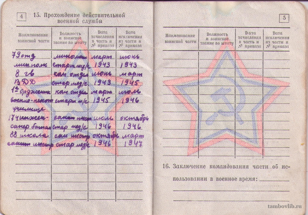 Военный билет Дошина Владимира Васильевича, с. Рудовка