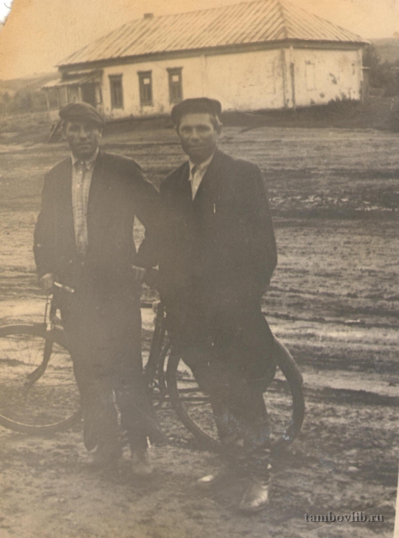 Грецов Николай Тимофеевич и Елагин Степан Афанасьевич - уроженцы села Перевоз возле сельского клуба.1935 Межпоселенческая центральная библиотека Ржаксинского района Портрет Перевоз, Тамбовская область, Россия