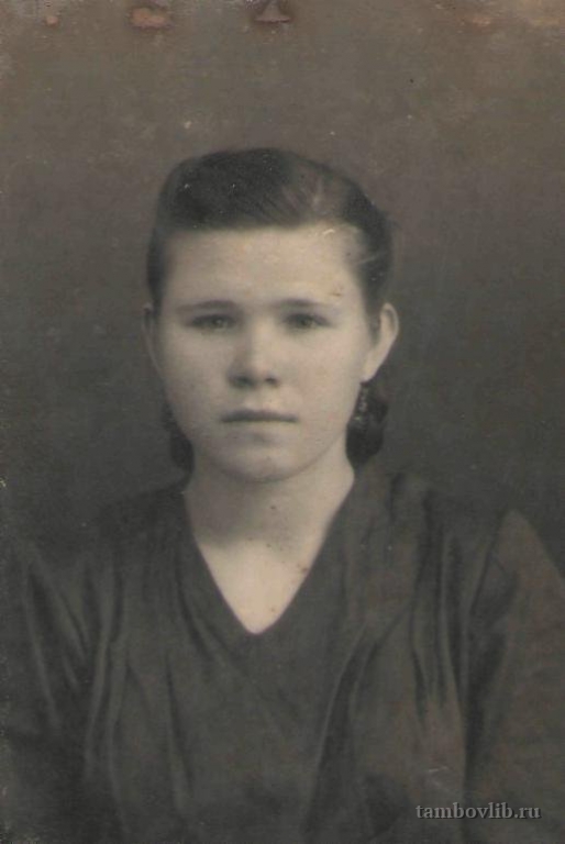 Бирюкова Анастасия Сергеевна родилась в 1932 г. в с.Дуплято-Маслово Знаменского района Тамбовской области. Из семейного архива Квардаковой Клавдии Петровны.1952 Знаменская ЦБС Портрет с.Дуплято-Маслово Тамбовской области