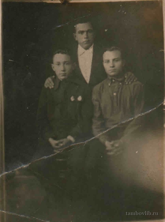 (слева направо) Мысин Пётр Арсентьевич Родился в 1919 г. в с. Троицкая Дубрава Лысогорского района Тамбовской области. Погиб при защите границ Белоруссии с Польшей (Брестской крепости). Был командиром десантников. Мысин Михаил Арсентьевич Родился в 1915 г. в с. Троицкая Дубрава Лысогорского района Тамбовской области. Пропал без вести. Мысин Николай Арсентьевич Родился в 1922 г. в с. Троицкая Дубрава Лысогорского района Тамбовской области. Пропал без вести.Добавлена 29 Апреля 2015
