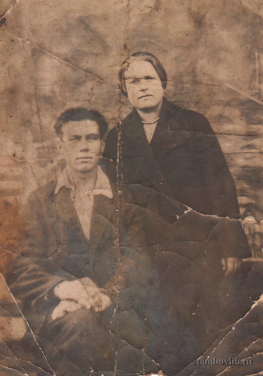 На портрете: жители села Дуплято-Маслово в довоенные годы. Семенова Мария Ерофеевна была председателем одного из колхозов. Квардаков Алексей Матвеевич погиб на фронте в 1943 году. Фото из семейного альбома Квардаковой Клавдии Петровны.1939 Знаменская ЦБС Портрет с. Дуплято-Маслово Знаменского района Тамбовской области