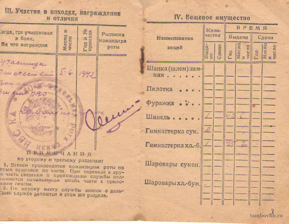 Красноармейская книжка Чурсиной Татьяны Петровны