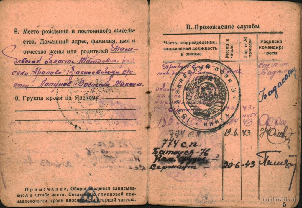 Родился в 1921 г. в с. Красносвободное Тамбовского района Тамбовской области. Призван в 1939 г. Тамбовским РВК Тамбовской области. Был зенитчиком. После ранения в 1943 комиссовали. Награждён орденом «Отечественной войны I степени». Умер в 2013 г. На фото Красноармейская книжка.Добавлена 29 Апреля 2015