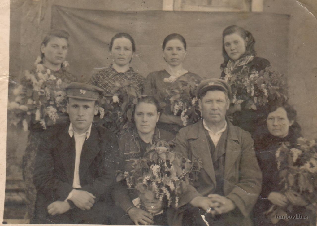 Бригада Уваровского лесхоза.Первая в верхнем ряду - Мерзлякова Валентина Александровна.Четвертая в верхнем ряду - Корнева Таисия Алексеевна. Первая справа в нижнем ряду - Беляева Матрена.