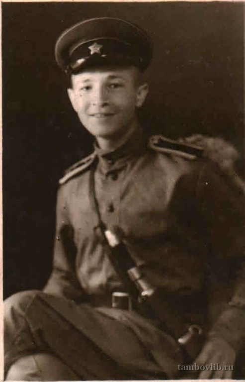 Родился 19 мая 1927 г. в г. Уварово Тамбовской области. 19 ноября 1944 г. (в возрасте 17,5 лет) был призван в Красную Армию и направлен в Тбилисское горно-артиллерийское училище им. 26 Бакинских комиссаров. Непосредственно в военных действиях не участвовал, т. к. на момент окончания училище война была окончена. В вооруженных силах прослужил 6 лет по 1951 г. Служил в республиках Средней Азии. По окончании службы в армии поступил в Пензенское художественное училище и работал в школе №6 г. Тамбова учителем рисования и черчения. Позднее в 80-е гг. преподавал в Тамбовском государственном педагогическом институте, читал курс «История искусств». Награжден юбилейными медалями. Умер в 1987 г. На фото курсант училища ТАУ.Добавлена 6 Мая 2015