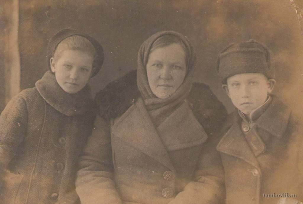 Степанова Антонина Михайловна вдова участника Великой Отечественной войны Жернак Федора Степановича с детьми Азой и Владимиром.