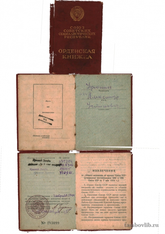 Орденская книжка Александра Устиновича Урюпина