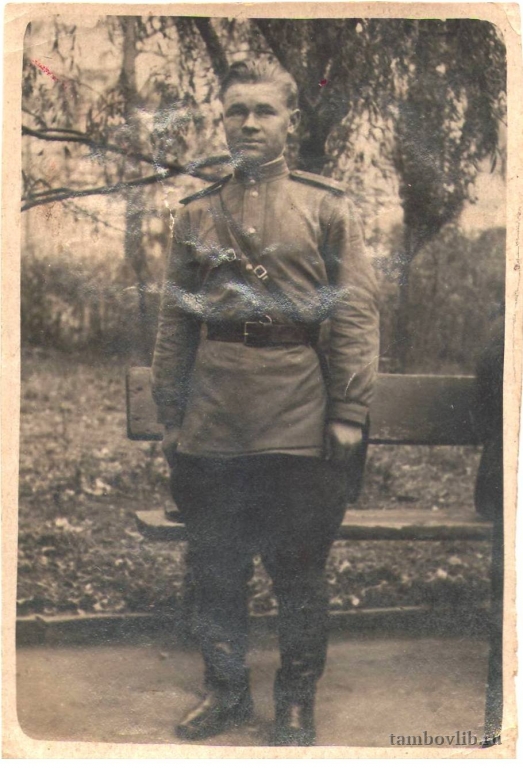 Родился в 1923 году в Тамбовском районе в селе Покрово-Пригородное. Призван в армию в октябре 1941 года Тамбовским РВК. Старший лейтенант, командир взвода 4 стрелковой роты 2 стрелкового батальона 236 Армейского запасного стрелкового полка. Воевал на Воронежском фронте. Был награжден медалью «За боевые заслуги». После войны был художником.1943 ЦБС города Мичуринска Портрет