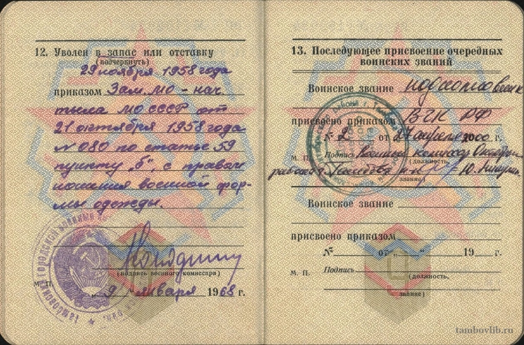 Родился 25 сентября 1913 г. в с. Адамовка Щорского района Днепропетровской области. Был призван в ряды армии 20 октября 1935 г. Участие на фронтах Великой Отечественной войны с июня 1941 по июнь 1944 гг. Южный Сталинградский, 4-й Украинский фронта с июня 1941 по июнь 1944 гг. в должности помощника и начальника отдела склада НКО. В послевоенные годы служил в г. Харькове, на Сахалине, в Тамбове. Демобилизован 29 ноября 1958 г. Награжден орденом «Красной Звезды», орденом «Отечественной войны I степени», медалью «За боевые заслуги», юбилейными медалями. Умер 18 сентября 2006 г. На фото Военный билет.