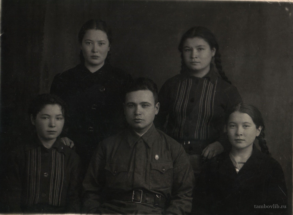 Сержант радио-киномеханик. Родился 16 мая 1920 г. (по паспорту 16 мая 1918 г.) в с. Татарщино Рассказовского района Тамбовской области. Был призван в мае 1938 г. Тамбовским ГВК. Был ранен в 1942 г. Демобилизован 23 ноября 1945 г. Награждён медалями «За боевые заслуги», «За оборону Москвы», «За взятие Кенигсберга», «За оборону Ленинграда». В послевоенное время работал киномехаником, затем начальником Тамбовского кинопрокатного пункта. Умер 26 июля 1960 г. На фото с сёстрами.Добавлена 8 Мая 2015