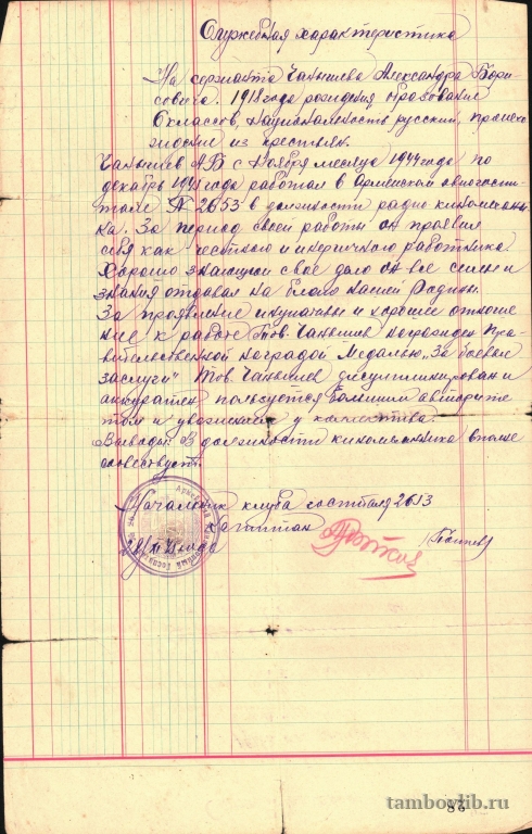 Служебная характеристика на Чанышева Александра Борисовича (Исхака Беккеровича)