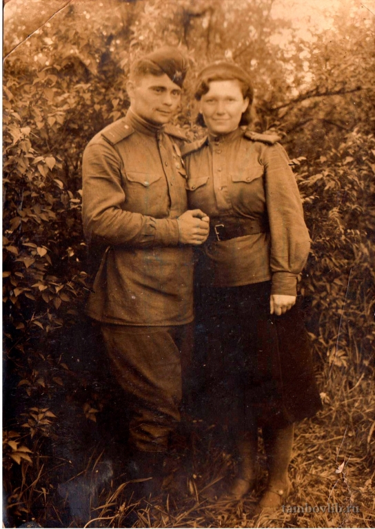 Евсюков Иван Агеевич родился в январе 1918 г. в Курской области Боброво-Дворском районе с.Оскалец. Призван в армию в 1938 г. Сержант на военном аэродроме, шофер-лаборант, обеспечивал бесперебойную работу по обработке материалов фоторазведки. Всю войну защищал г.Ленинград. Ни разу не был ранен. Был награжден медалью «За боевые заслуги», медалью «За оборону Ленинграда». После войны приехал в г.Мичуринск, трудился таксистом. Умер в декабре 1981 г. Бубнова Нина Михайловна родилась в ноябре 1917 г. в г.Мичуринске. Призвана на фронт в 1942 г. Мичуринским ГВК. Сержант технической службы, стрелок-радист, обслуживала боевые вылеты разведки, занималась приборным оборудованием. Всю войну защищала г.Ленинград. Ни разу не была ранена. Была награждена медалью «За боевые заслуги», медалью «За оборону Ленинграда». После войны вернулась в родной г.Мичуринск, работала продавцом книжного магазина. Умерла 12 июня 1990 г.Добавлена 13 Мая 2015