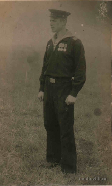 Родился 21.05.1923 г. в г. Тамбове. С 1941 по 1942 гг. учился в училище авиационных техников на Дальнем Востоке. С 1942 по 1944 гг. служил в 12 истребительном авиационном полку военно-воздушных сил Краснознамённого Балтийского флота мастером авиационного вооружения. Сержант. Награждён во время войны медалями «За оборону Ленинграда» (8 августа 1944 г.), «За боевые заслуги» (25 февраля 1944 г.), «За Победу над Германией в ВОВ 1941-1945 гг.» (30 мая 1946 г.). Умер 5.05. 2001 г.Добавлена 14 Мая 2015