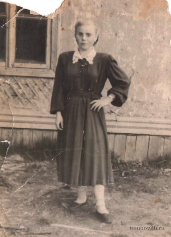 Платухина Клавдия Тимофеевна родилась в 1936 году в селе Александровка Знаменского района Тамбовской области. Работала в сельском хозяйстве. Из семейного альбома дочери Хапровой Валентины Васильевны, с. Дуплято-Маслово.1953 Знаменская ЦБС Портрет с. Александровка Знаменского района Тамбовской области