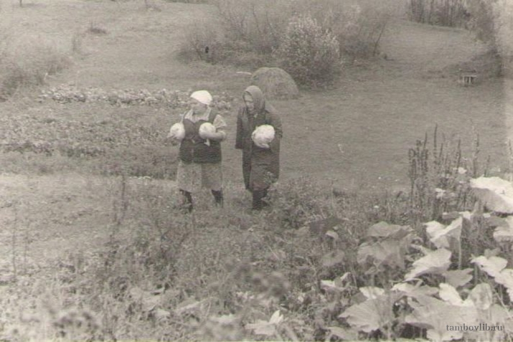 Редина Анна Серафимовна и Верещагина Валентина на уборке капусты в с. Кобяки
