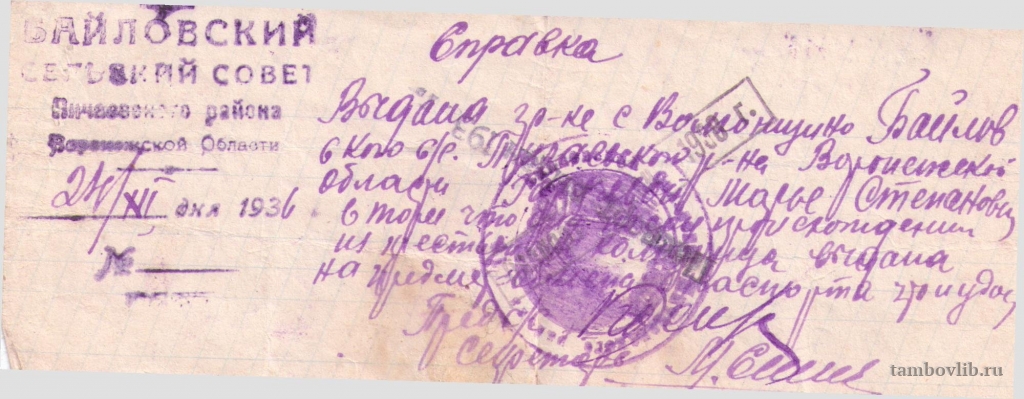 Из архива музейной комнаты центральной библиотеки.1936 Межпоселенческая центральная библиотека Пичаевского района Документ