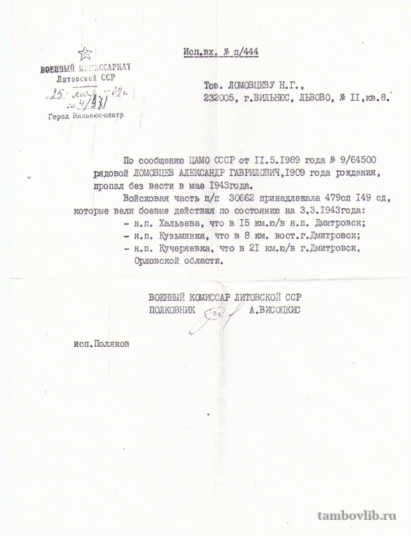 Из архива музейной комнаты центральной библиотеки1943 Межпоселенческая центральная библиотека Пичаевского района Документ