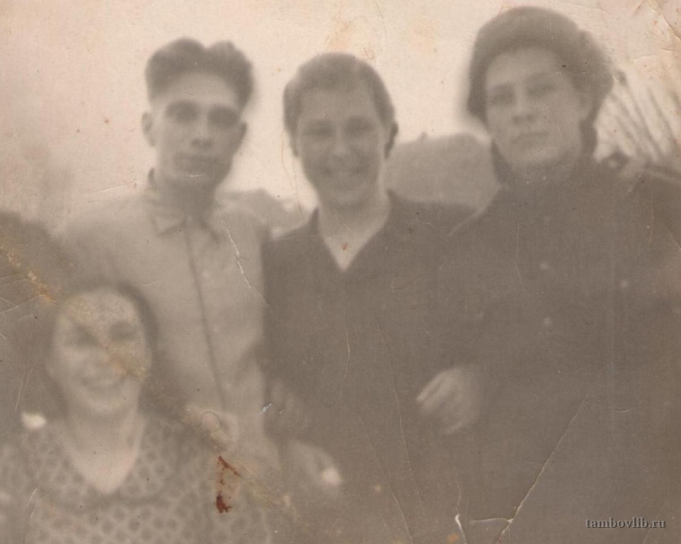 Макарова Валентина Ивановна (слева внизу) с братом Матвеевым Николаем Ивановичем и его супругой.1950 Межпоселенческая центральная библиотека Ржаксинского района Семейное