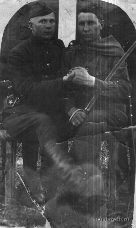 Родился 20 мая 1919 г. в Тамбовской области. Сержант. Награждён орденами «Красной звезды», «Красного знамени». На фото справа.