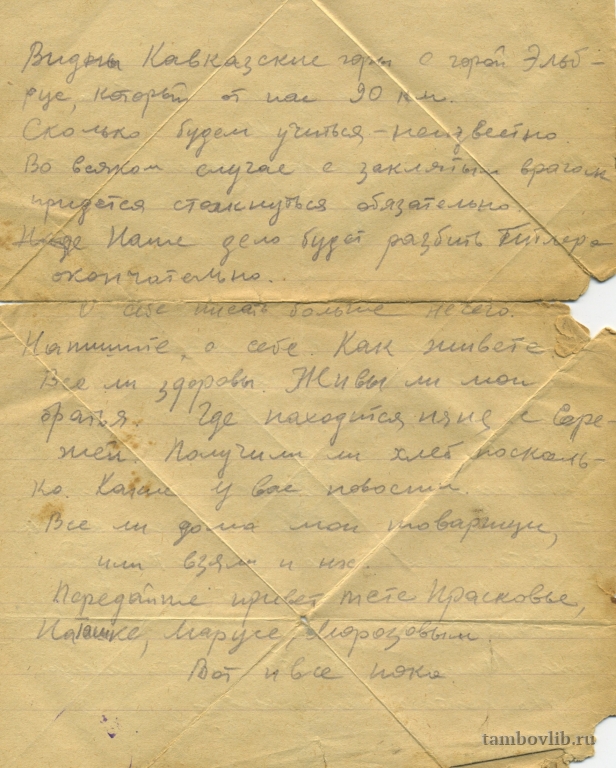 Второе письмо с фронта, 2 страница. Из архива Бакураевой (Голубева) Людмилы Евгеньевны.