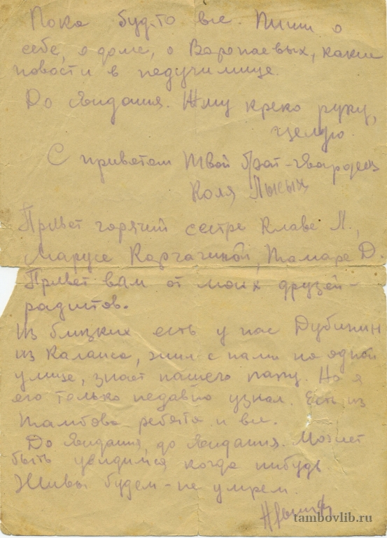 Письмо с Миус-фронта от Лысых Николая Афанасьевича