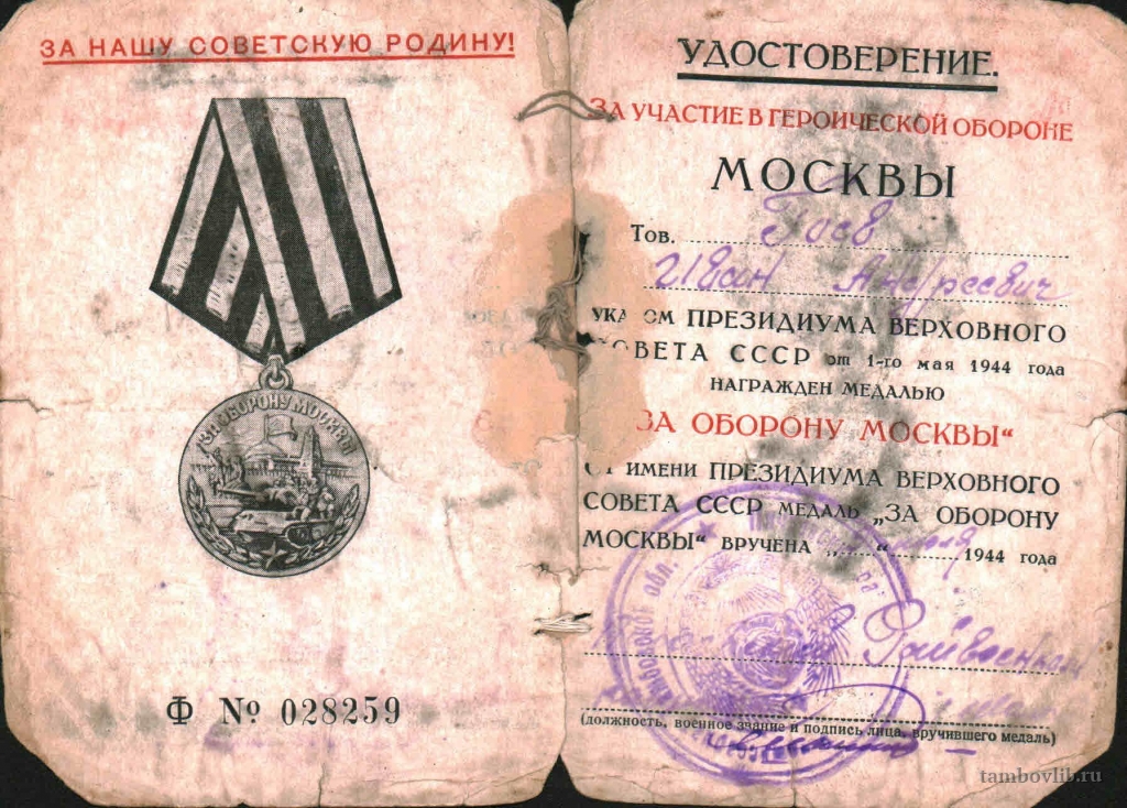 Родился в 1918 г. в с. Отъяссы Сосновского района Тамбовской области. В рядах Красной Армии с 1938-1940 гг. (финская война) и с 1941-1945 гг. (Великая Отечественная война). Служил в звании лейтенанта в должности командира пулемётной роты 148 стрелкового полка 47 стрелковой дивизии. В составе действующей армии 4-го Украинского фронта в районе Межина Латвийская ССР с 25 по 27 ноября 1944 г. отбил огнём своих пулемётов три контратаки противника, подавив при этом две огневые точки противника, которые мешали продвижению нашей пехоты вперед, уничтожил пулемётный расчет противника и на поле боя осталось до 20 немецких солдат и офицеров убитыми. Проявил в бою смелость и решительность. Награждён орденом «Отечественной войны I степени», медалями «За оборону Москвы», «За Победу над Германией в ВОВ 1941-1945 гг.», юбилейными медалями. Умер 13 июня 1965 г.