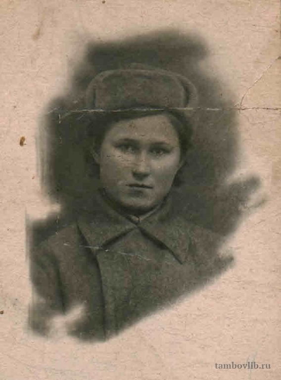 Родилась 8 января 1923 г. в г. Тамбове. Закончила 10 классов школы №8 г. Тамбова. После окончания школы поступила на курсы немецкого языка, после преподавала в Староюрьевской школе. В конце 1941 г. ушла добровольцем на фронт. Была в должности санинструктора Управления 211 стрелковой Краснознаменной Черниговской девизии, звание — старшина медслужбы. С июля 1942 г. участвовала в боевых действиях на Воронежском фронте и на 1-м Украинском фронте с октября 1943 г. За время боев с 5 по 11 июля 1943 г. вынесла с поля боя 20 человек с их оружием и оказала помощь 18 раненым. В апреле 1944 г. была тяжело ранена. После госпиталей была демобилизована. Награждена орденом «Красной звезды», двумя медалями «За отвагу» и юбилейными медалями. Умерла 21 апреля 1972 г.1942, март ТОУНБ Портрет г. Елец