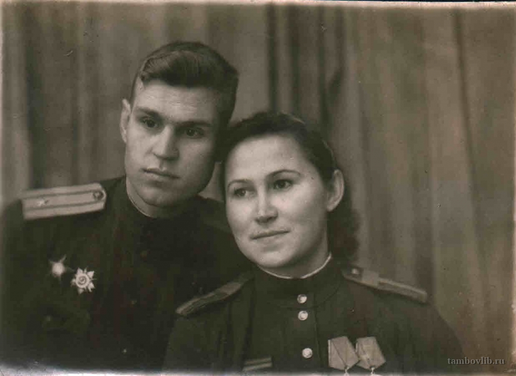 Родился 21 июня 1921 г. в г. Татарске Новосибирской области. Закончил 8 классов средней школы, после школы работал начальником почтового вагона. В 1939 г. поступил в Омское военное училище и призван на фронт Омским горвоенкоматом в звании лейтенанта. С сентября 1941 г. участвует в боевых действиях на Брянском фронте. С 26 июля 1942 г. работает в должности помощника начальника 1-го отделения штаба 211 стрелковой Черниговской дивизии в звании капитана. Несколько раз был ранен. Закончил войну в звании майора. После войны продолжал службу в г. Стрый Дрогобычской области УССР. Награжден орденами «Красной звезды», «Отечественной войны I степени», «Отечественной войны II степени», медалью «За отвагу» и юбилейными медалями. Умер 5 июня 1976 г. На фото с женой Земцовой Ниной Павловной.Добавлена 24 Сентября 2015