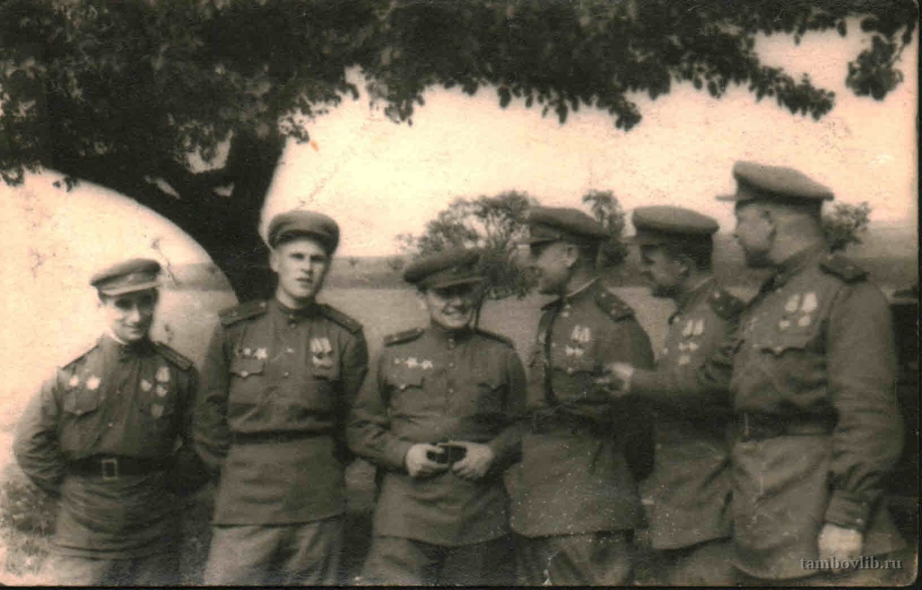 Справа налево майор Горохов, подполковник Федарченко, полковник Самуэльсон, подполковник Качаев, майор Худобородов, майор Газданов — в день вручения полку ордена Богдана Хмельницкого II ст.