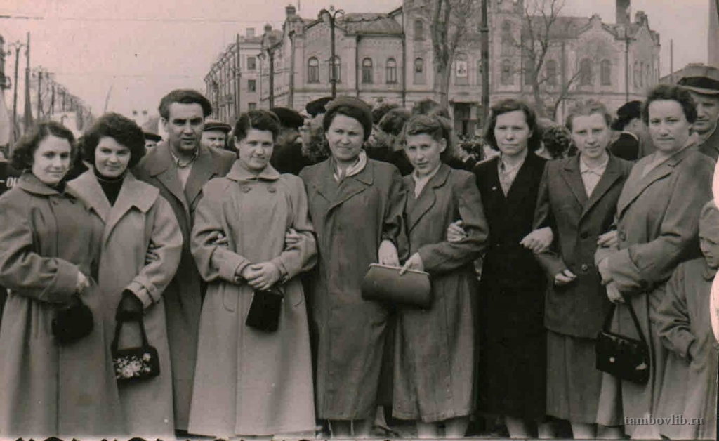 На фото в центре, Первомайская демонстрация, администрация Анилино-красочного завода (ныне Пигмент).