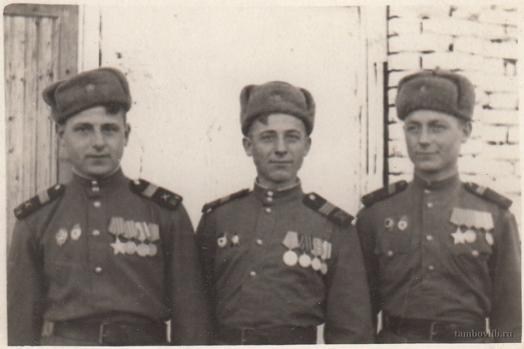 Родился 20 июля 1925 г. в многодетной крестьянской семье (3 брата и 5 сестер) в с. Бурнак Жердевского района Тамбовской обл. Защищать родину ему пришлось с первых дней войны, еще когда он был учащимся ремесленного училища № 10 г. Москвы. Будучи членом добровольной пожарной команды, он со старшими товарищами дежурил во время ночных налетов на этажах, чердаках, у гидрантов, патрулировал улицы, тушил зажигательные бомбы, следил за соблюдением светомаскировки. Днем делал корпуса бомб, гранат, снарядов, участвовал в сооружении заграждений на подступах к столице. В ряды Советской Армии был призван 12 января 1943 г., присягу принял 23 февраля 1943 г. (в 17,5 лет). Полгода проходил обучение военной специальности «наводчик миномета» и в 18 лет направлен на фронт. Боевое крещение принял 15 октября 1943 г. под Кировоградом. До окончания войны находился в действующей армии в составе 3-ей гвардейской механизированной бригады 1-го гвардейского механизированного полка 3-го Украинского фронта. Участвовал в боях на территории Украины, Венгрии, Австрии. Победу встретил на австрийской земле. Приказами от 29 марта 1945 г. и от 3 апреля 1945 г. были объявлены благодарности от Верховного Главнокомандующего Маршала Советского Союза товарища Сталина за взятие венгерских городов Сомбатель, Капувар и Кесег и важных узлов венгерских дорог, австрийских городов Винер-Нойштадт, Айзенштадт, Нойнкирхен и Глоггниц – важных опорных пунктов немецкой обороны на подступе к Вене. За бои под городом Секемфехервар был награжден орденом Славы III степени и медалью «За боевые заслуги». За храбрость, стойкость и мужество, проявленное в борьбе с немецко-фашистскими захватчиками, награжден орденом Отечественной Войны II степени, медалями «За Победу над Германией», «За Взятие Будапешта», «За взятие Вены», «Георгий Жуков». С 9 мая 1945 по 1 августа 1948 гг. проходил службу в составе 3 гвардейского механизированного полка 1-ой гвардейской механизированной дивизии Закавказского Военного Округа. С 1948 по 1950 гг. проходил обучение в Львовском военно-политическом училище, там же вступил в ряды партии и после окончания был распределен на службу в Германию. С 1950 по 1955 гг. служил заместителе командира минометной роты по политической части в звании старший лейтенант 286 Гвардейского Бранденбургского Ордена Красного Знамени стрелкового полка 94 гвардейской Звенигородской стрелковой девизии 3 армии группы советских оккупационных войск в Германии. В 1955 г. вернулся на родину в г. Жердевку Тамбовской области. Работал на руководящих должностях райкома, райисполкома Жердевского района, был директором кирпичного завода, заместителем председателя народного контроля. Умер 21.07.2000 г. На фото слева.Добавлена 30 Декабря 2015