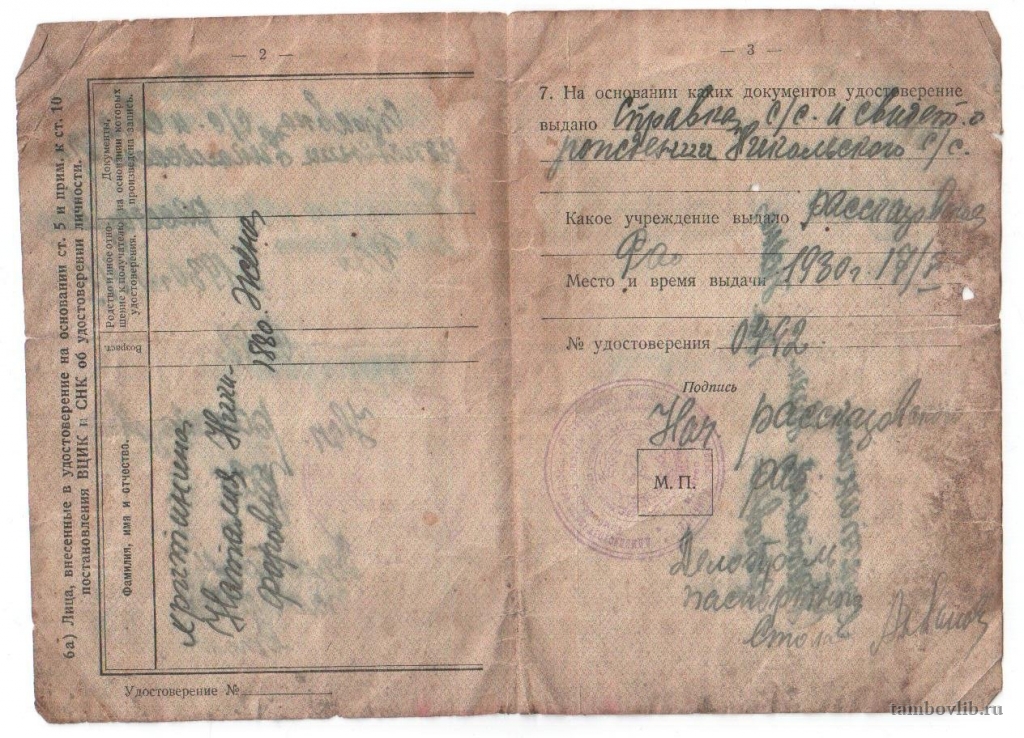 из архива жителей пос. Октябрьский1930 Межпоселенческая центральная библиотека Пичаевского района Документ Тамбовская область,Пичаевский,с Байловка 2-я