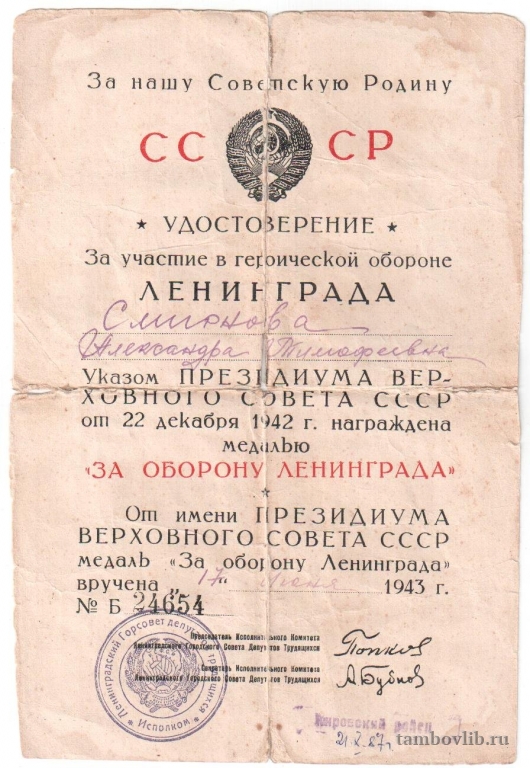 документ их архива семьи Большаковых1943 Межпоселенческая центральная библиотека Пичаевского района Документ Город Санкт-Петербург город федерального значения