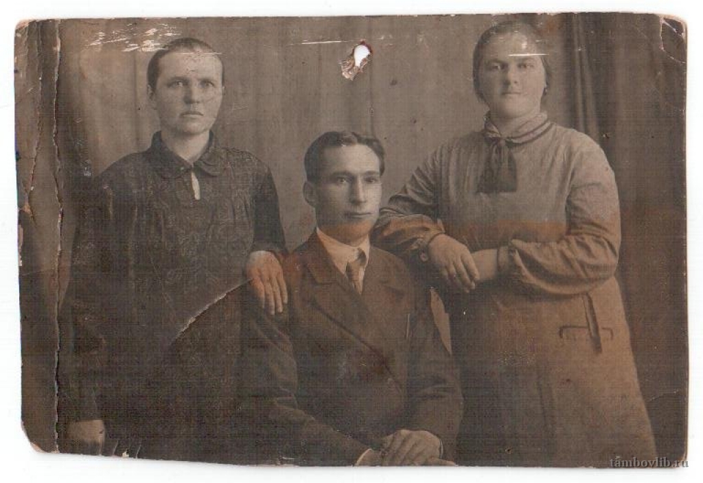 На обратной стороне фото надпись: "На добрую память крестнику Василию Романовичу от крестного Василия Матвеевича, Веры Филипповны и Марины. 22.05.1934 г."1934 Межпоселенческая центральная библиотека Пичаевского района Семейное